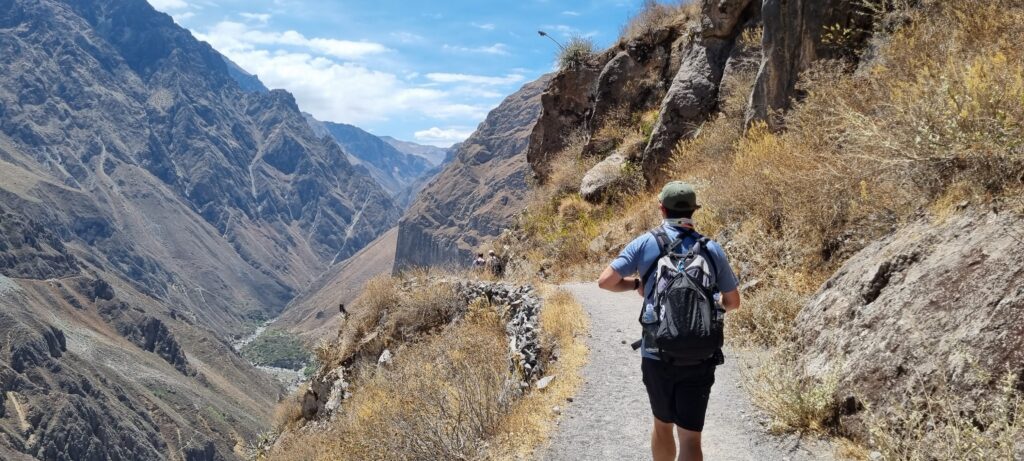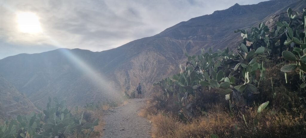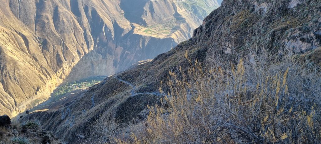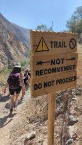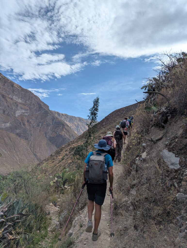 We opted to do a guided two-day trek with an overnight stay at the bottom of the canyon. The route was similar to the All Trails route shown below, but instead of taking the right turn up to Cosñinhua we went straight across, ignoring the warning sign where the paths split.