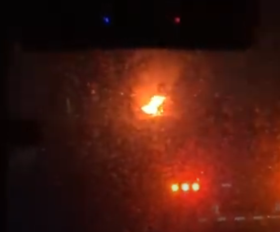 After stopping again, the lorry slowly started to drive forwards again, turning and going around the fire. Our coach followed slowly, a video of the moment is shown below.