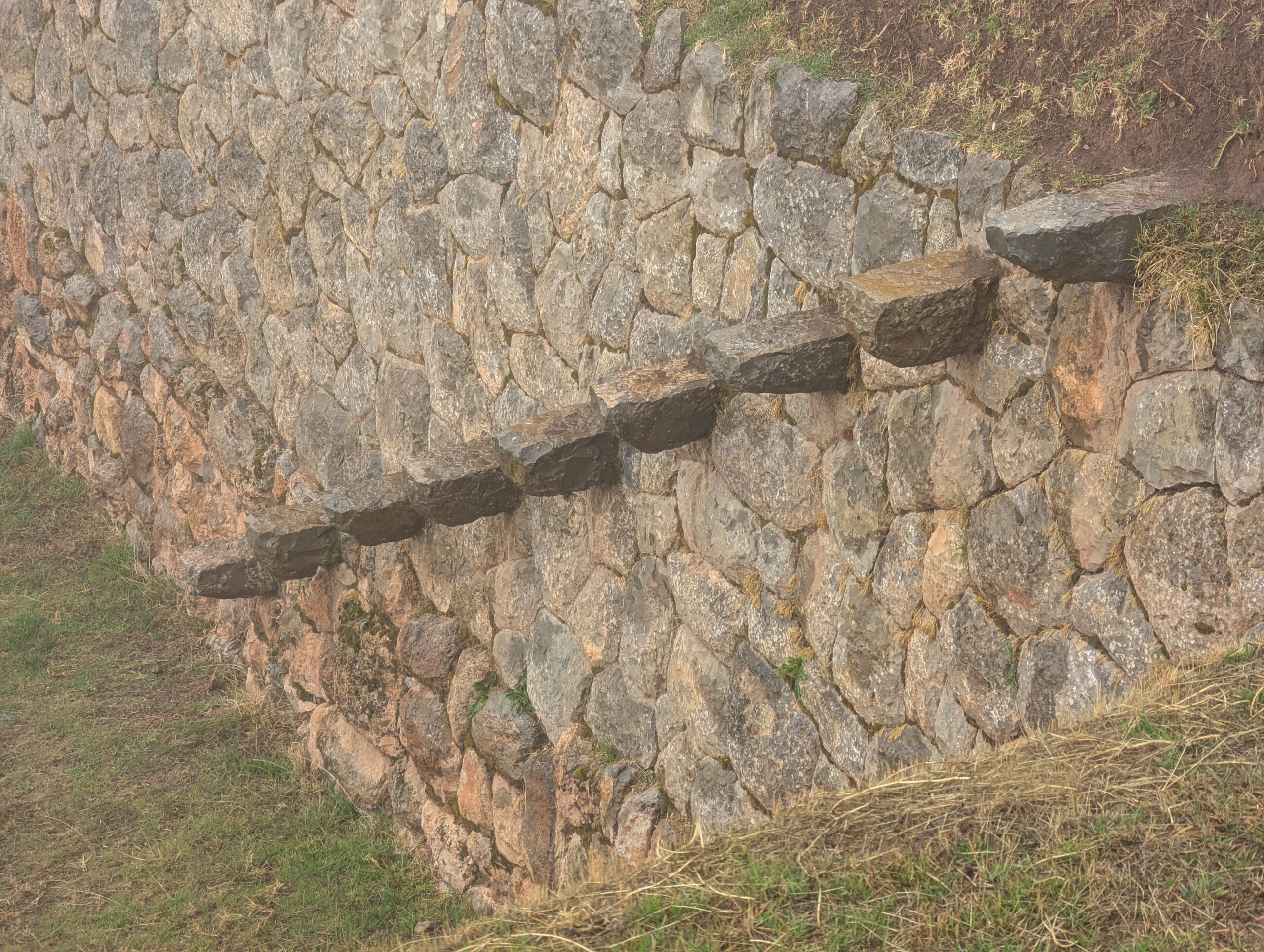 Chinchero features some classic Incan wall designs, with stones shaped so that they exactly fit together without the use of mortar, and with protruding rocks used in the place of stair cases to maximise space on the terraces for agricultural use.